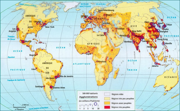 carte des populations du monde